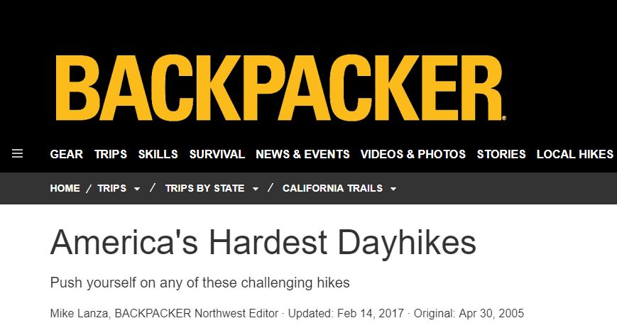 But the list…The damn list from Backpacker Magazine of America’s Hardest Day Hikes