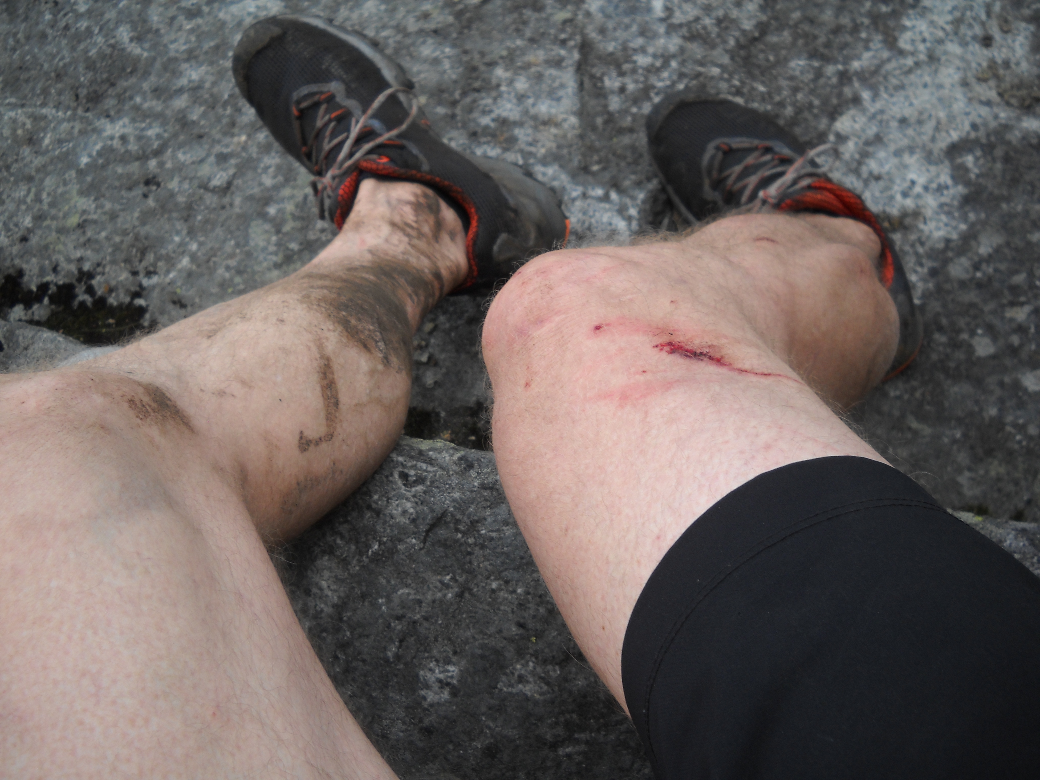 Down and down, toeing the rock tops, through mud, across riverbeds, and over blow downs.