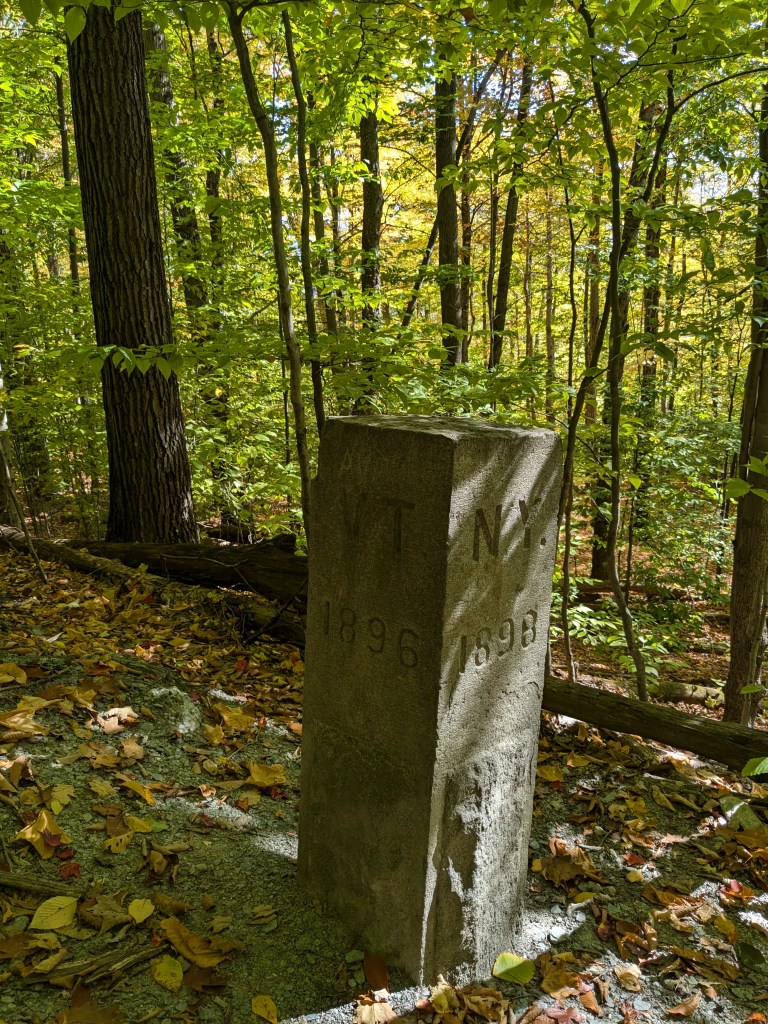 These markers are the corners where three states come together. There are four of ’em in Massachusetts. NY / VT / MA is the furthest away from my Boston home and the most difficult to find.